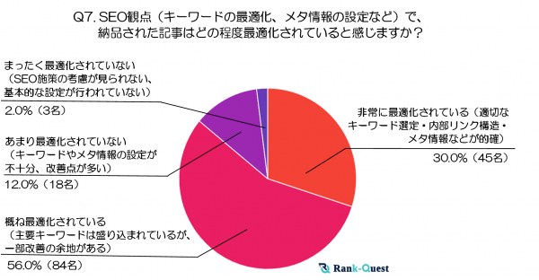 調査結果7:SEO観点(キーワードの最適化、メタ情報の設定など)で、納品された記事はどの程度最適化されていると感じますか?