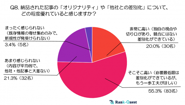 調査結果8:納品された記事の「オリジナリティ」や「他社との差別化」について、どの程度優れていると感じますか?