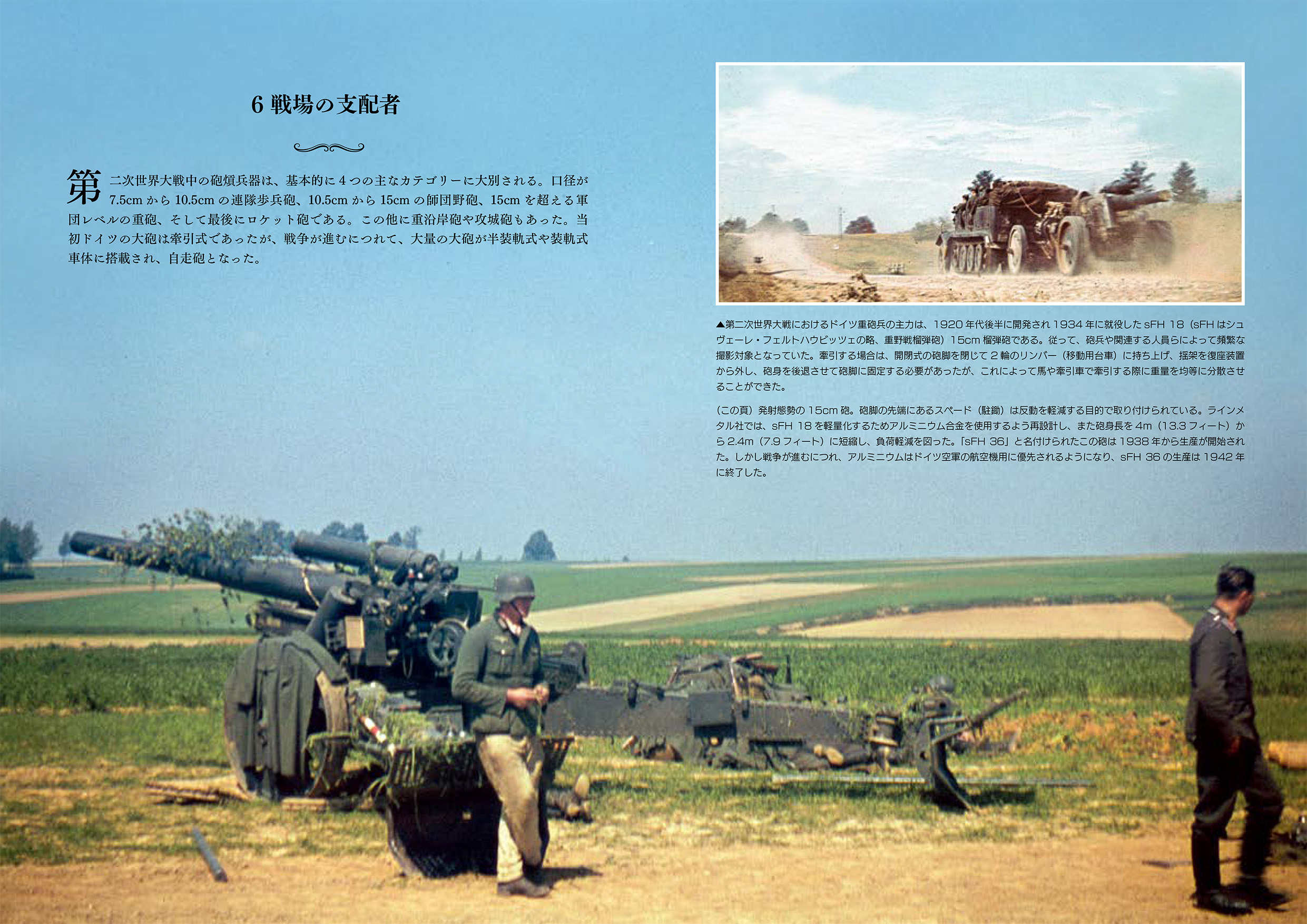 地上戦では独ソ戦双方の戦車、車両、兵器、歩兵のカラー写真。航空戦では、飛行中の航空機や地上の航空機、爆撃機、戦闘機、ドイツ空軍の兵士、戦闘による破壊などが描写され、最後に捕虜、パルチザン、衛生兵、前線の兵士や民間人の日常生活、レジャー活動、ロシアの厳しい冬の影響などが収録され、戦場の裏側へと誘います。