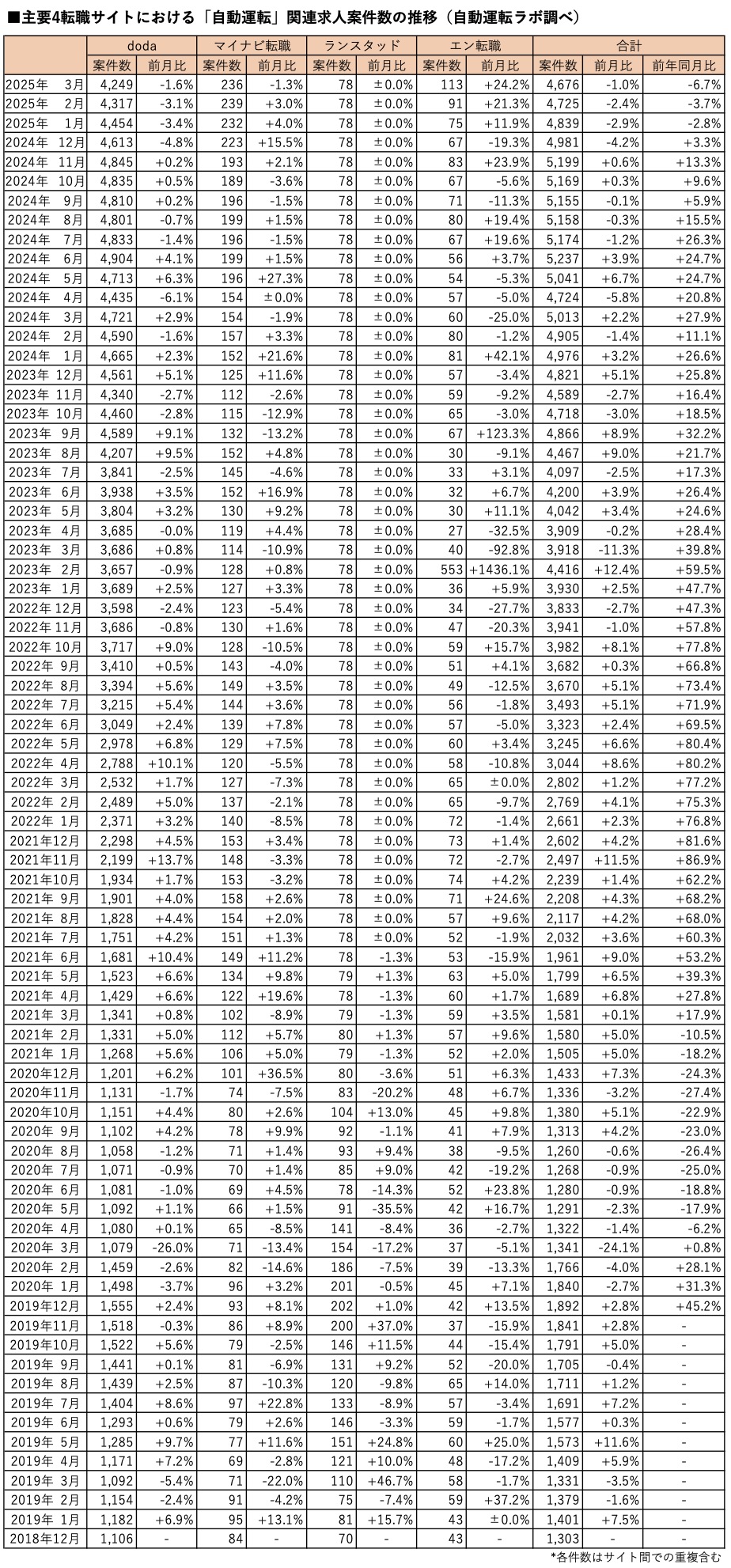●『自動運転ラボ』による定点求人案件数調査について