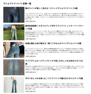 特徴2:デニムワイドパンツの選び方が楽しくなるような特集豊富なコンテンツ!