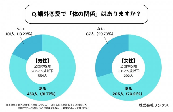 既婚者向けマッチングアプリ「既婚者クラブ」のユーザーを対象に、株式会社リンクス(東京都港区)が全国の20歳~59歳までの既婚男女3,000人を中心に、「婚外恋愛に関するアンケート調査」を実施しました。