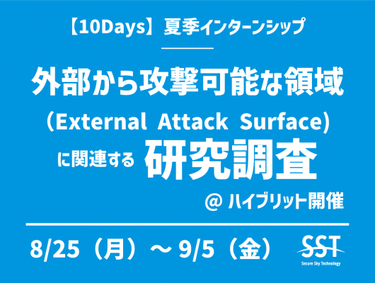 安全なWebサイトを実現するために脆弱性診断とクラウド型WAFを提供する株式会社セキュアスカイ・テクノロジー(本社:東京都千代田区 代表取締役:大木 元 以下、セキュアスカイ)は、学生向けに夏季インターンシップ「外部から攻撃可能な領域(External Attack Surface)」に関連する研究調査」を2025年8月25日から10日間に渡り、ハイブリット形式で開催いたします。