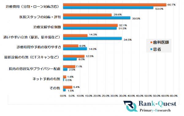 両者とも費用負担が医院選びの最大の決め手であると認識しており、大きな認識差はありません。