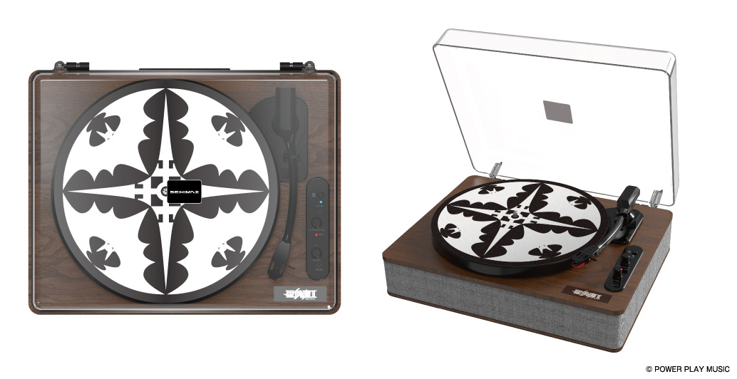 また透明のダストカヴァー中央と本体にはバンドロゴを装飾加工、 特典としてバンドの紋章を大きく表現した12インチのスリップマットと、紋章を印刷した音飛びプレートが購入者全員に付いてきます。