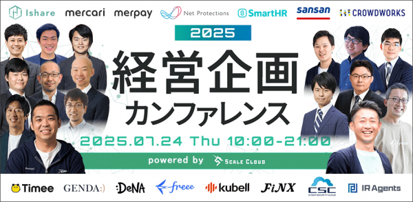 本カンファレンスは、メルカリ小泉氏の基調講演をはじめ、Sansan・freee・DeNA・タイミー・クラウドワークスなどの第一線で活躍し業界を牽引する経営層・経営企画責任者が登壇し、経営企画に関するテーマでトークセッションを行い、実務に役立つリアルな情報をオンラインにて配信いたします。