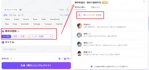 【AI作曲サイトTopmediaiで「歌手選択」機能を利用する手順】
