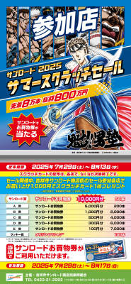 吉祥寺サンロード商店街では、恒例の「サンロード2025サマースクラッチセール」を下記のとおり開催します。