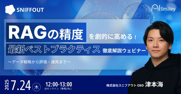 AIポータルメディア「AIsmiley」を運営する株式会社アイスマイリー(東京都渋谷区、代表取締役:板羽晃司)、2025年7月24日(木)12時からRAGの精度向上をテーマにウェビナーを開催します。