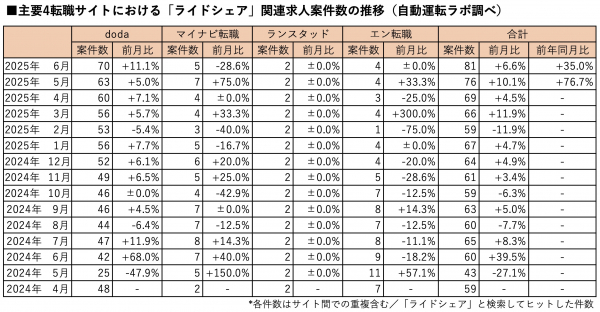 株式会社ストロボ(以下、当社/東京都港区 代表取締役 下山哲平)が運営するニュースメディア『自動運転ラボ』(https://jidounten-lab.com)は、ライドシェア関連求人案件数の最新調査(2025年6月末時点)をまとめましたので、結果を発表いたします。