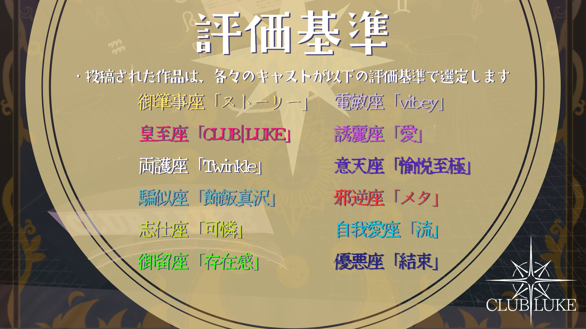 第1回イベントの場では、フォトコンテストの開催が発表されました。CLUB|LUKEの新規オープンを記念して行われるもので、期間中にX(旧Twitter)に投稿された写真の中から、12人のキャストがそれぞれ設定したテーマで審査をし、それぞれ1点を選出するというものです。