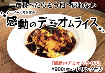 新潟市万代シテイバスセンター1Fにて展開する飲食店『シュメール万代店』よりこの度、一度食べたらもう他へ戻れない『感動のデミオムライス』がグランドメニュー化され新登場いたしました!