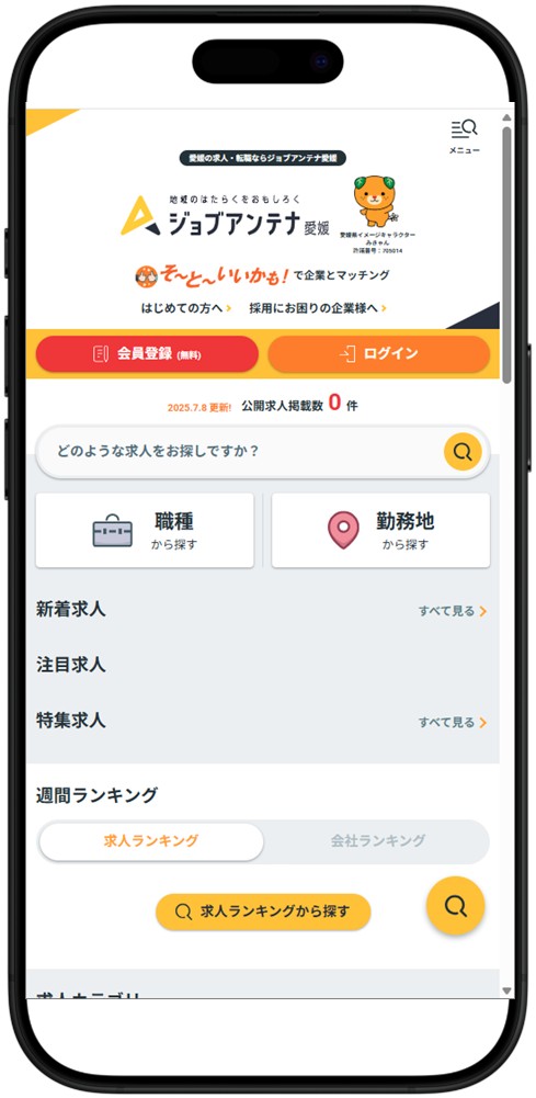 ■「ジョブアンテナ愛媛」の画面イメージ ※画像は開発中のものです