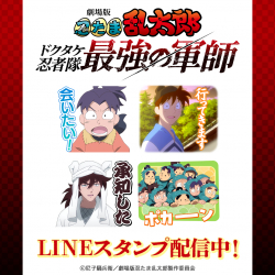 劇場版「忍たま乱太郎 ドクタケ忍者隊最強の軍師」初となるLINEスタンプがインクルーズより配信開始!是非、LINEスタンプでも劇場版「忍たま乱太郎 ドクタケ忍者隊最強の軍師」の世界観をお楽しみください。