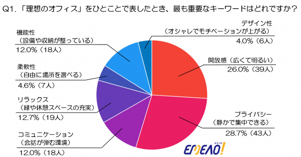 最も多くの回答を集めたのは「プライバシー(静かで集中できる)」で28.7%(43人)と、約3割の人が静かで集中できる環境を最優先していることが分かります。