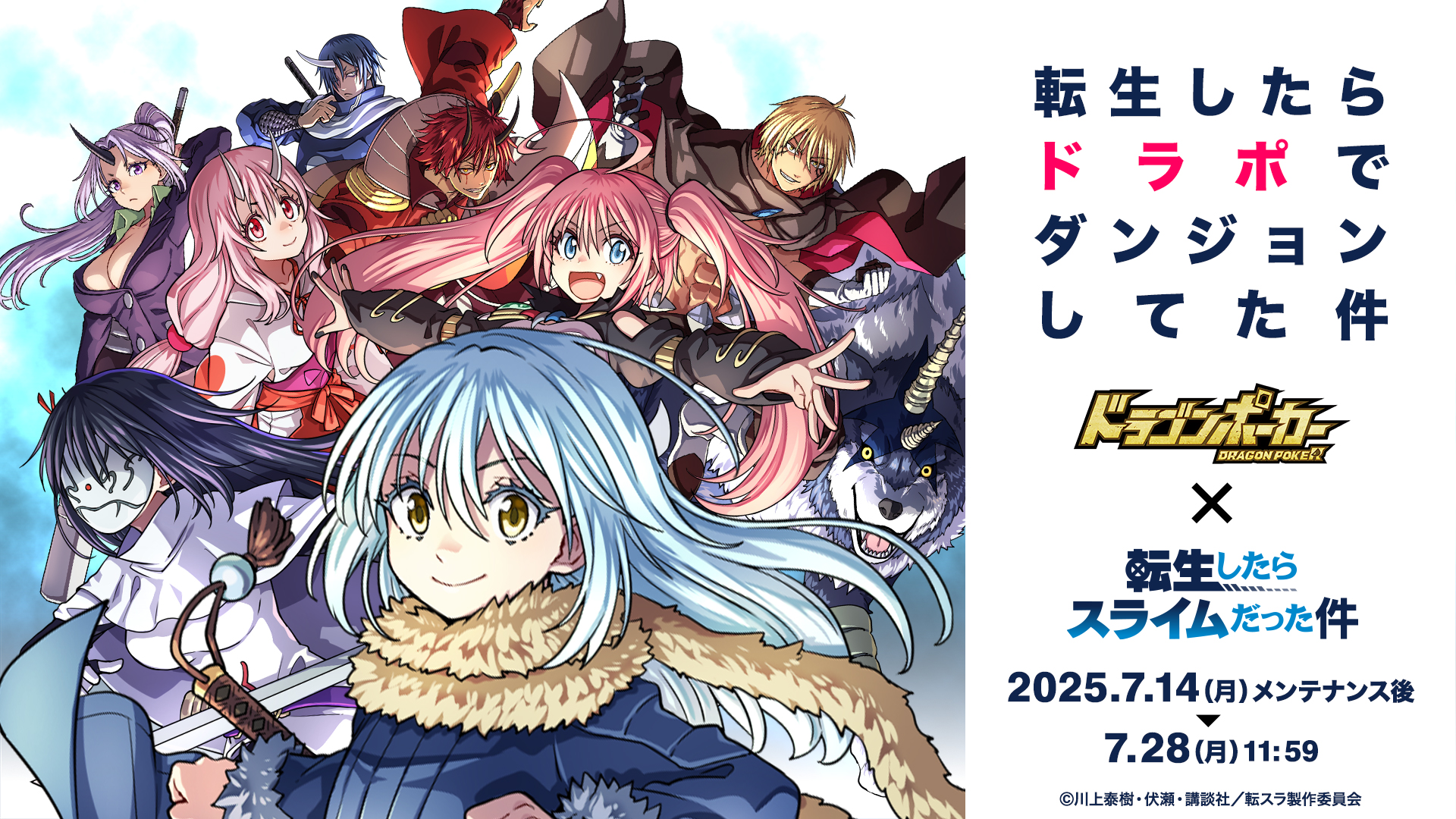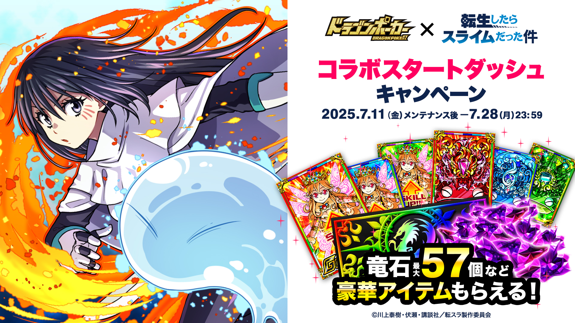 株式会社アソビズム(本社:東京都千代田区、代表取締役:大手智之)は、App Store・Google Playにて好評配信中の『ドラゴンポーカー』とTVアニメ『転生したらスライムだった件』のコラボイベントを記念して「コラボ開催記念!豪華プレゼントキャンペーン」を、2025年7月11日(金)より実施することをお知らせいたします。