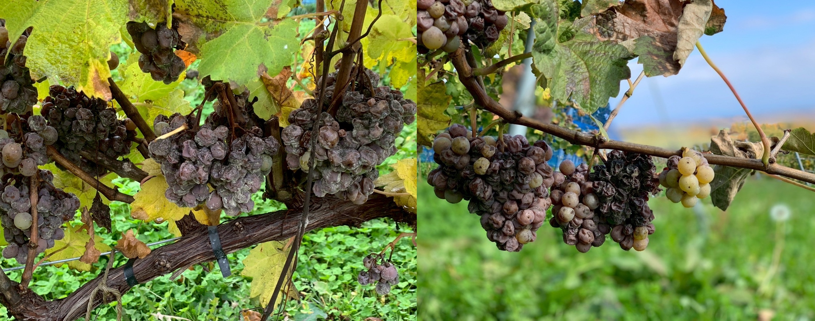 貴腐ワイン、英語では「Noble Rot Wine」と表現されます。「Noble」は高貴な、「Rot」は腐敗を意味する言葉で、「Botrytis cinerea(ボトリシス・シネレア)」というカビの力によって生み出される特別な極甘口のワインです。腐敗したように見えるブドウからは想像できない、豊潤で上品かつコクのある甘さを持つワインができることから、「高貴なる腐敗」と表現されてこの名前がつきました。