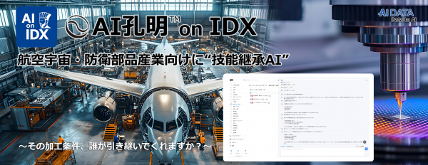 企業データとAIの利活用カンパニー、AIデータ株式会社(本社:東京都港区、代表取締役社長 佐々木隆仁、以下AIデータ社)は、航空宇宙・防衛分野における精密加工・品質管理ノウハウの属人化・ブラックボックス化を解消するため、現場の技術と知識をAIでナレッジ化・継承する「AI孔明 on IDX」の同産業向け提供を開始いたします。