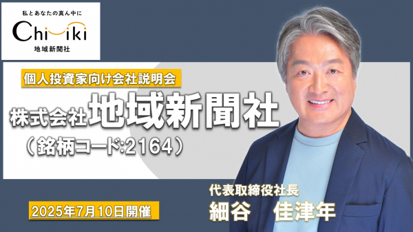 株式会社地域新聞社(本社:千葉県八千代市、代表取締役社長:細谷 佳津年、証券コード:2164、以下「当社」といいます。)は、2025年7月10日に個人投資家向けオンライン会社説明会を開催いたしました。