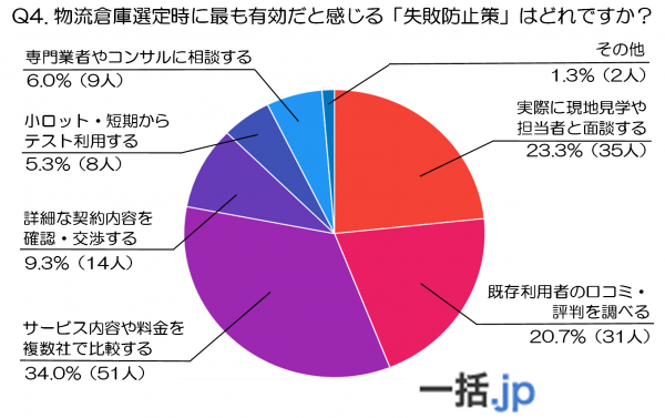 調査4 : 物流倉庫選定時に最も有効だと感じる「失敗防止策」は?