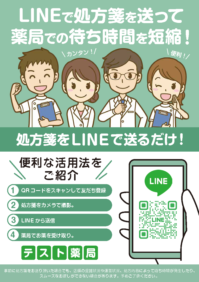 LINE処方箋システム本体・LINE公式アカウント取得代行・利用マニュアル・使い方レッスン・店内掲示用のチラシ・ポスターデザイン