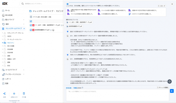 1. 走行・充電・温度管理などの時系列データ一元管理(IDX)