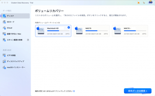 ★Cisdem Data Recovery for Mac公式サイト:https://www.cisdem.com/jp/data-recovery-mac.html