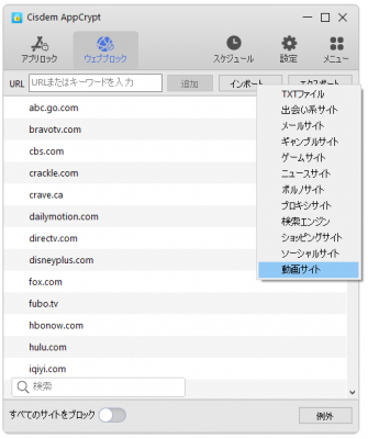 ステップ5. URLかキーワードを入力してChromeから気が散るサイトをブロックリストに追加します。また、カテゴリ別にサイトのリストをインポートできます。