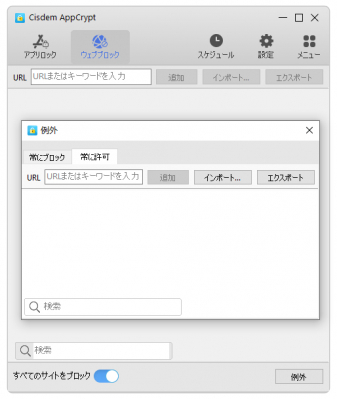 ステップ6. 底部の「すべてのサイトをブロック」を有効にし、「例外」の「常に許可」リストに作業用のサイトだけ追加すれば、もっと仕事に集中できるようになります。
