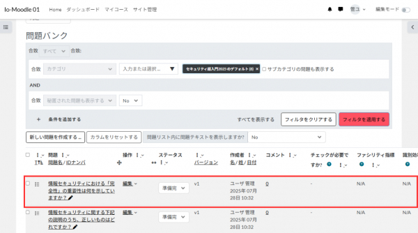 ※問題バンクの使い方については、イオマガジンHPにて公開している「管理者用Moodleマニュアル(https://www.io-maga.com/sample_document/)」をご覧ください。