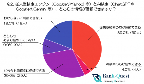 2.従来型検索エンジン(GoogleやYahoo! 等)とAI検索(ChatGPTやGemini 等)、どちらの情報が信頼できますか?