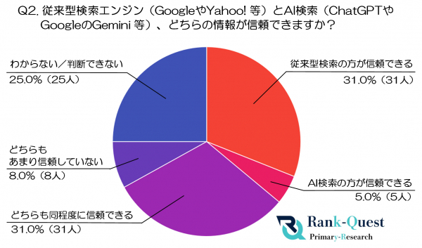 2.従来型検索エンジン(GoogleやYahoo! 等)とAI検索(ChatGPTやGemini 等)、どちらの情報が信頼できますか?