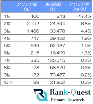 対象キーワードは、2025年7月中にランクエストサイトで検索結果1位から10位に掲載されたものに限定し、各順位ごとのクリック率を分析しました。