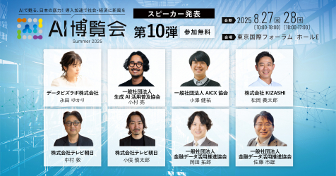 「AI博覧会 Summer 2025」第10弾スピーカー発表では、日本を代表する8名によるカンファレンスを実施します。ぜひご参加ください。