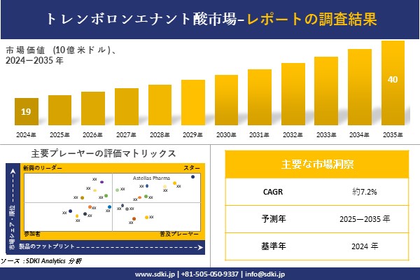 SDKI Analytics(本社:東京都渋谷区)は、このたび、2025年08月11に「トレンボロンエナント酸市場調査レポート:2025-2035年の市場規模、シェア、傾向の予測」を発表しました。トレンボロンエナント酸に関する市場調査レポートには、統計的及び分析的アプローチを使用した予測評価が含まれています。この調査レポートでは、一次及び二次調査方法を使用して分析された主要な業界洞察を通じて将来の傾向を理解できるようにすることで、主要な市場動向を読者に説明しています。