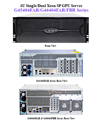 【4U ラックマウント, UP Intel 5/4th XeonSP, Intel C741 PCH, 4*2.5” 6G SATA内蔵ベイ, 4*G5 PCIe/CXL1.1(X16)バス, 4*シングルスロットGPU/3*ダブルスロットGPU/2*トリプルスロットGPUサポート,