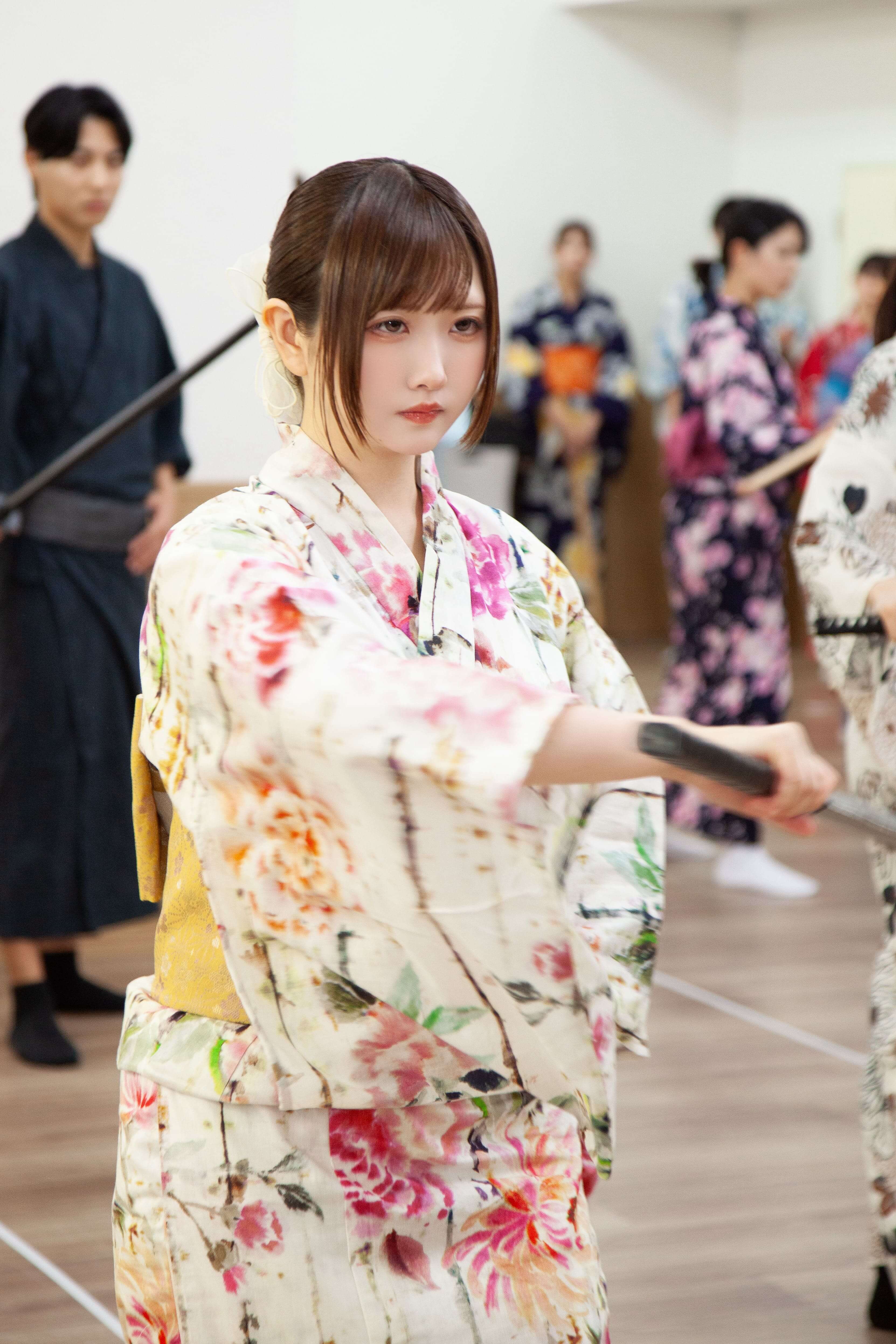 コスプレイヤーのすみれおじさん(紫花菫)が8月2日、総合芸術学校『エンドレス・アカデミー』の特別講座「和装で殺陣」に参加し、浴衣姿で日本舞踊と剣殺陣に挑戦した。