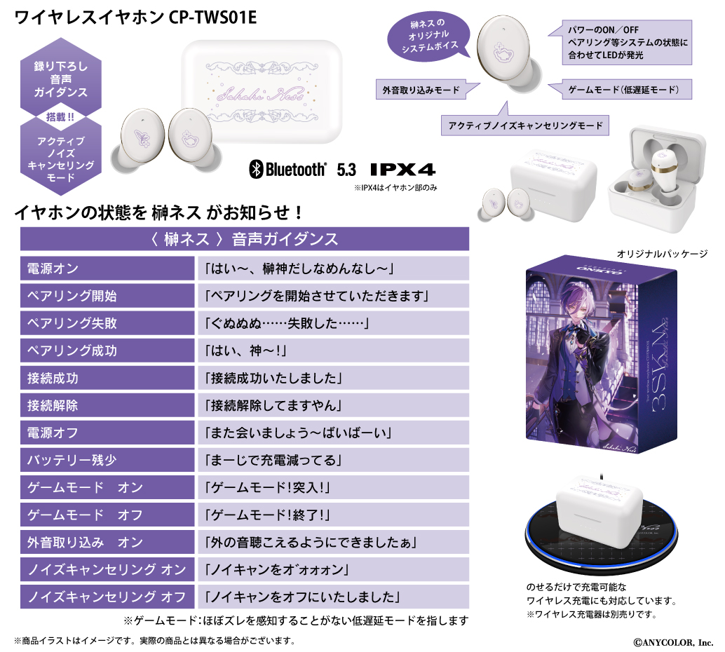 オンキヨー株式会社(所在地:大阪府大阪市、代表取締役社長:大朏 宗徳)は、完全ワイヤレスイヤホン「CP-TWS01E」とANYCOLOR株式会社が運営する「にじさんじ」※1所属の榊ネスとのボイス入りコラボレーションワイヤレスイヤホンを受注販売いたします。