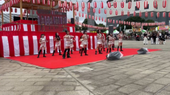 当日は野外でのパフォーマンスとなり、会場にはお祭りを楽しむ多くの来場者が集まりました。普段のレッスンとは異なる雰囲気に緊張する姿も見られましたが、本番では可愛らしく、そして力強く、堂々としたダンスを披露。演目を終えた子どもたちの表情には、達成感あふれる笑顔が広がっていました。