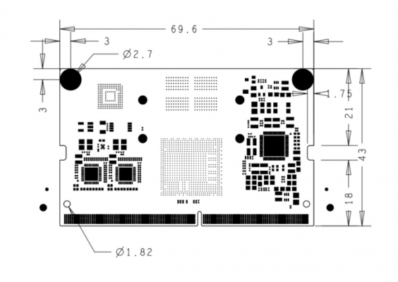 ・ サイズ:69.6×43mm 動作温度:-20~75°C OS:Linux / Android