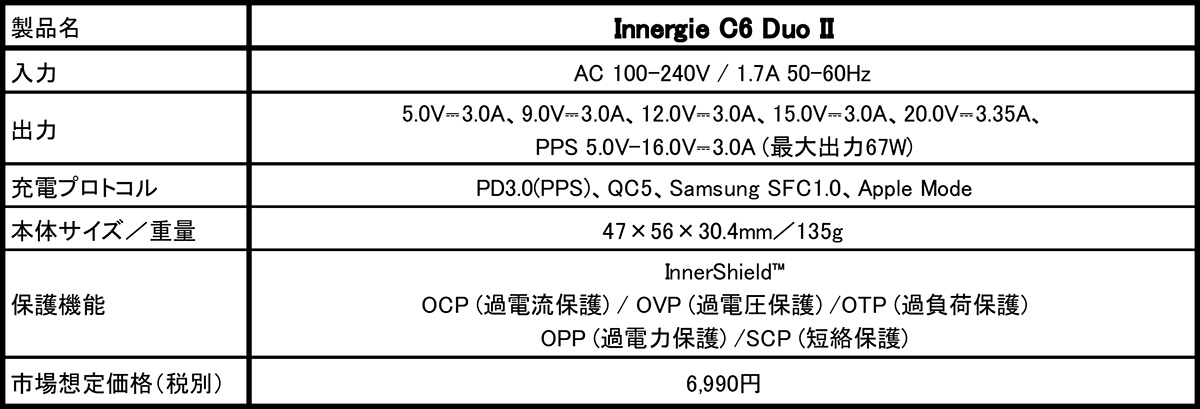 【Innergie C6 Duo II販売サイト】