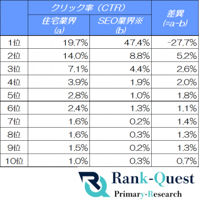 https://rank-quest.jp/column/column/how-to-seo/ 【SEO対策】で検索順位No1を獲得した(注1)ランクエストが住宅業界の検索順位毎のクリック率を徹底解説