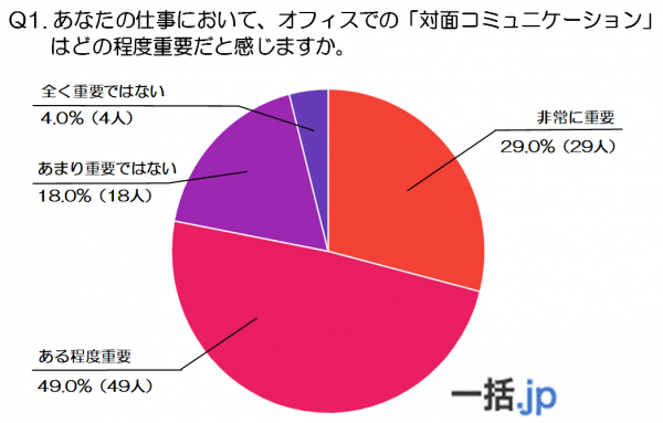調査結果1:オフィスでの「対面コミュニケーション」はどの程度重要だと感じますか。
