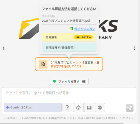 AIサービスやシステム開発を手掛けるCLINKS株式会社(本社:東京都中央区、代表取締役:河原浩介)は、提供する企業向け生成AIチャットツール「ナレフルチャット」において、2025年8月25日(月)に新機能「ファイル高精度解析機能」をリリースしたことを発表いたします。本機能により、Excel、PDF、Word、PowerPoint内の画像やグラフ情報まで読み取れるようになり、企業の情報活用範囲が飛躍的に向上します。