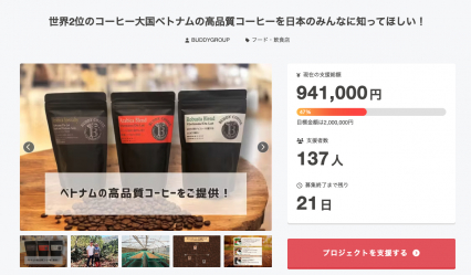 プロジェクト名:世界2位のコーヒー大国ベトナムの高品質コーヒーを日本のみんなに知ってほしい!