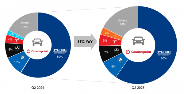 South Korea Connected Car Sales Share by Auto Group, Q2 2024 vs Q2 2025