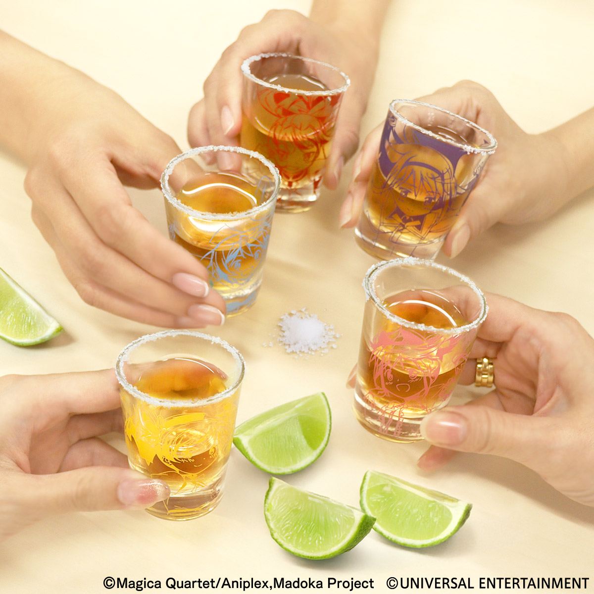 まどか、ほむら、マミ、さやか、杏子の5人をあしらったショットグラスのセット。