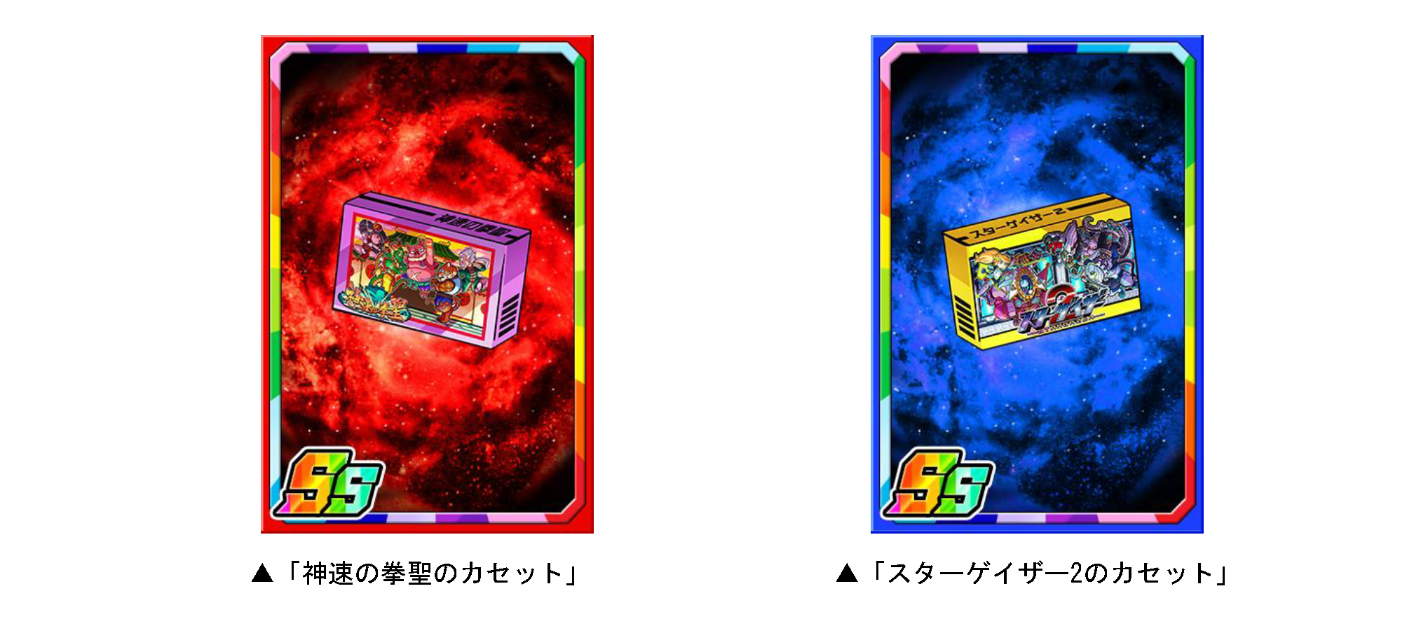 ダンジョンのボスモンスターを倒すと、まれに新たな限定子分カード「神速の拳聖のカセット」「スターゲイザー2のカセット」が手に入ります。限定子分カードは複数枚集めると進化ができ、子分スキルの効果が強力になります。