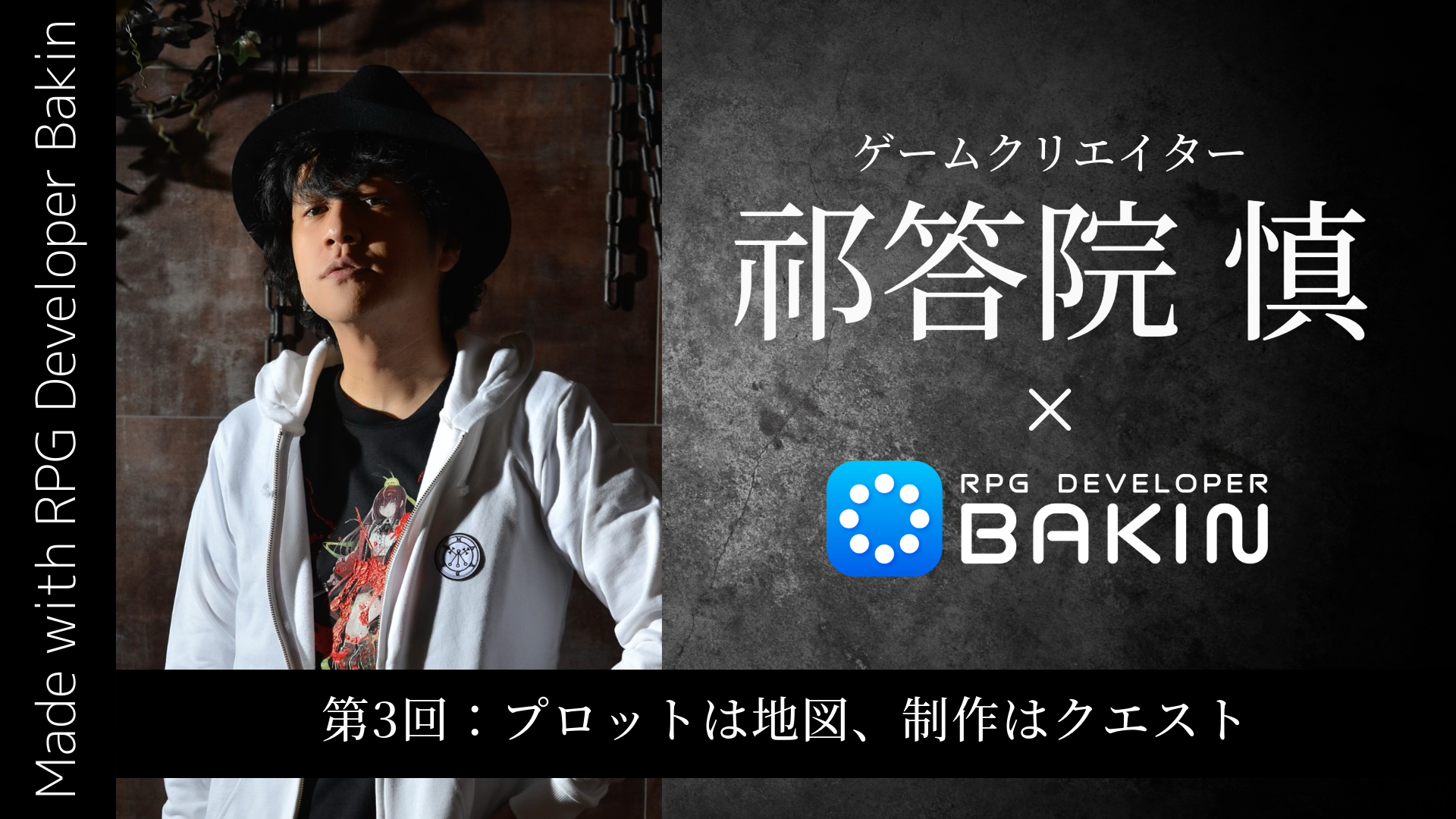 人気ホラーゲーム『コープスパーティー』のクリエイター・祁答院氏が、Bakinを使って制作中の新たなサンプルゲーム。その制作過程を紹介する開発ブログ「Made with RPG Developer Bakin」の第3回「プロットは地図、制作はクエスト」を公開しました。