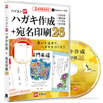 タイピングや動画などの実用から見積や出納帳・勤怠管理などの業務用まで、数多くのパソコンソフトシリーズを発売している株式会社デネット(本社 埼玉県さいたま市 代表取締役:岩見 武)は、『パソコンでハガキ作成+宛名印刷26』を2025年9月27日(土)より発売いたします。